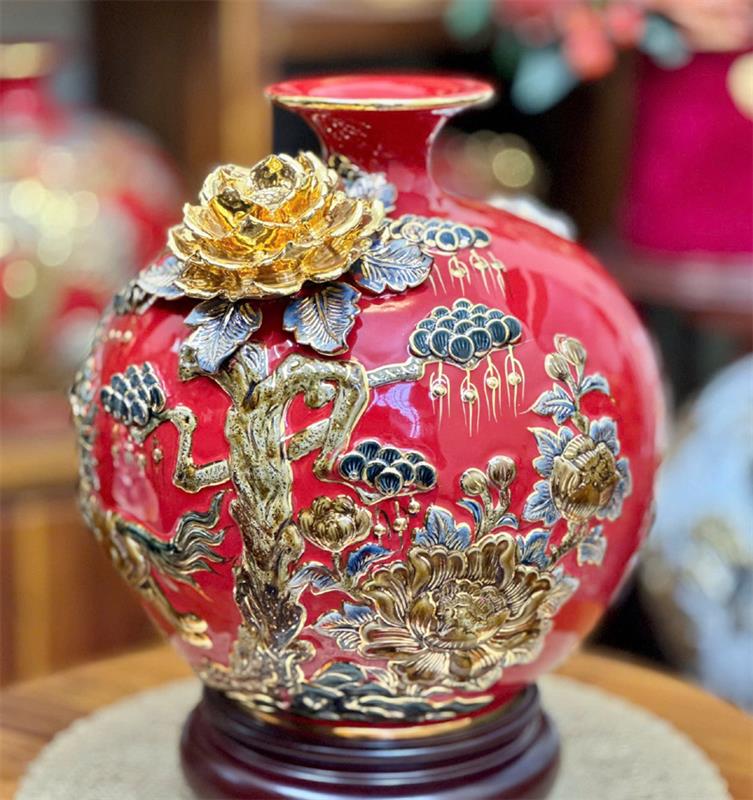 Bình hút tài lộc sứ Phú Vinh thể hiện nét vẽ cầu kỳ của truyền thống, kết hợp với đường vẽ vàng kim tràn viền làm tăng sự sang trọng của bình hút Tài Lộc